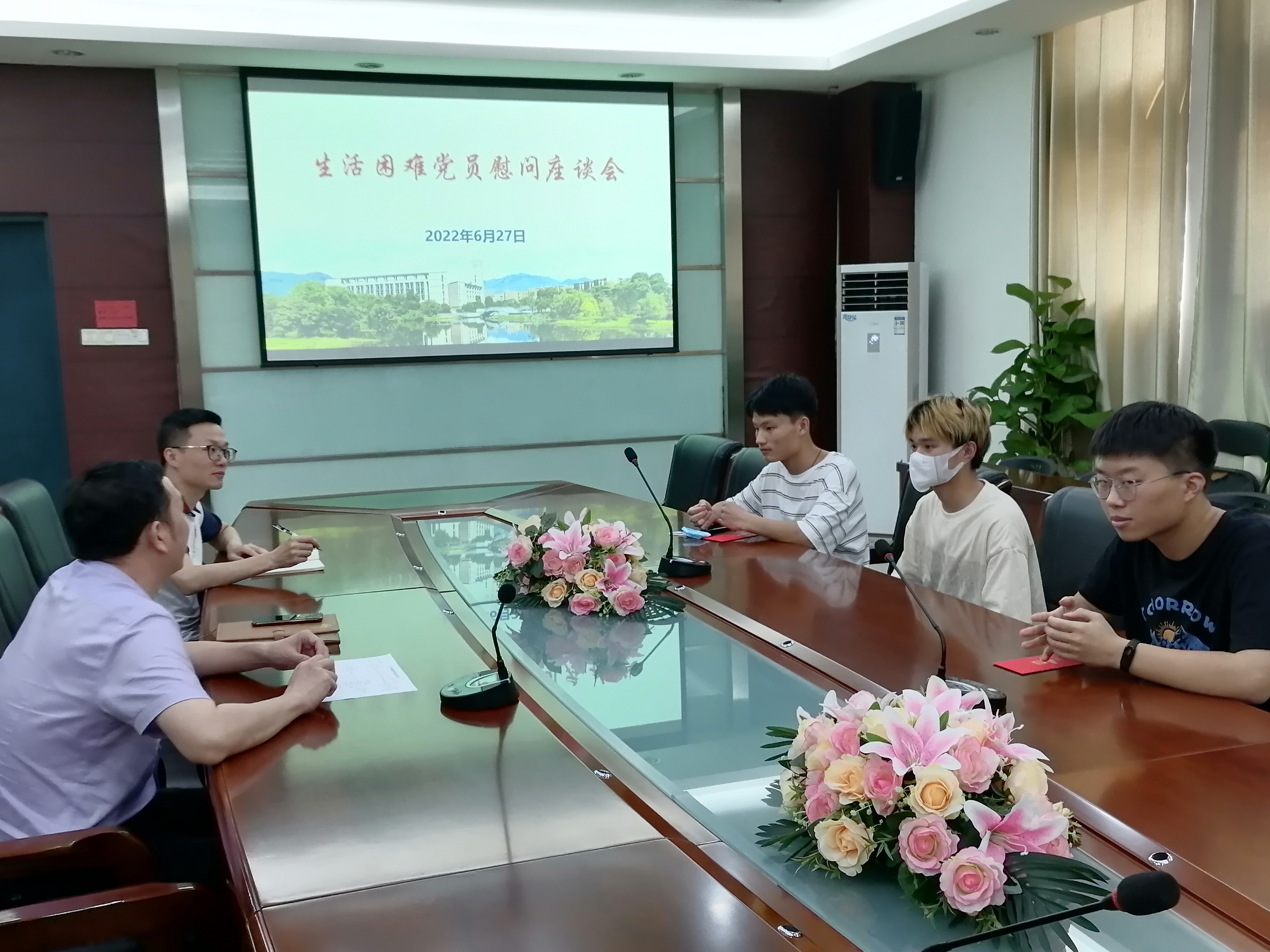 为了充分体现学院对生活困难学生党员的关怀,进一步做好关爱帮扶生活困难学生党员工作, 6月27日下午,学院于嘉锡楼313会议室召开生活困难学生党员慰问座谈会,学院党委张志忠副书记、辅导员王文栋及学生党员代表参加此次座谈。