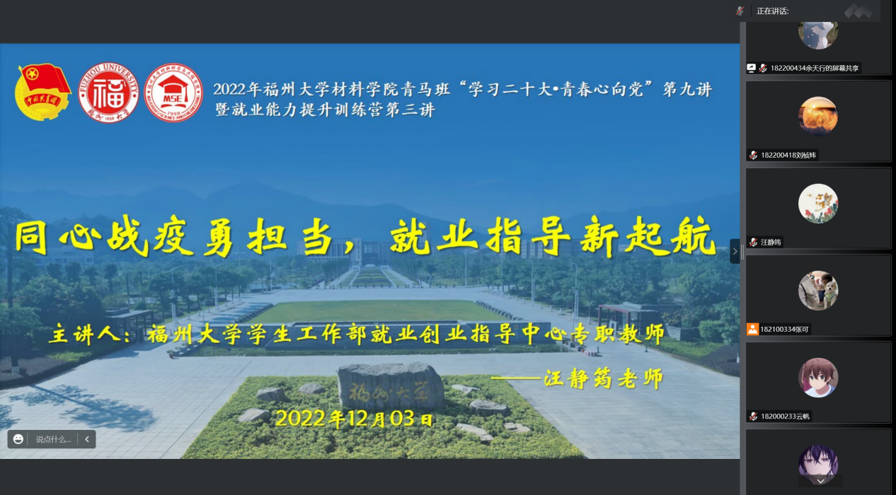 为帮助同学们了解简历制作和求职技巧,解答同学们有关就业的困惑,12月3日,成人动漫 开展了以“同心战疫勇担当,就业指导新起航”为主题的青马班“学习二十大,青春心向党”第九讲暨就业能力提升训练营第三讲活动。