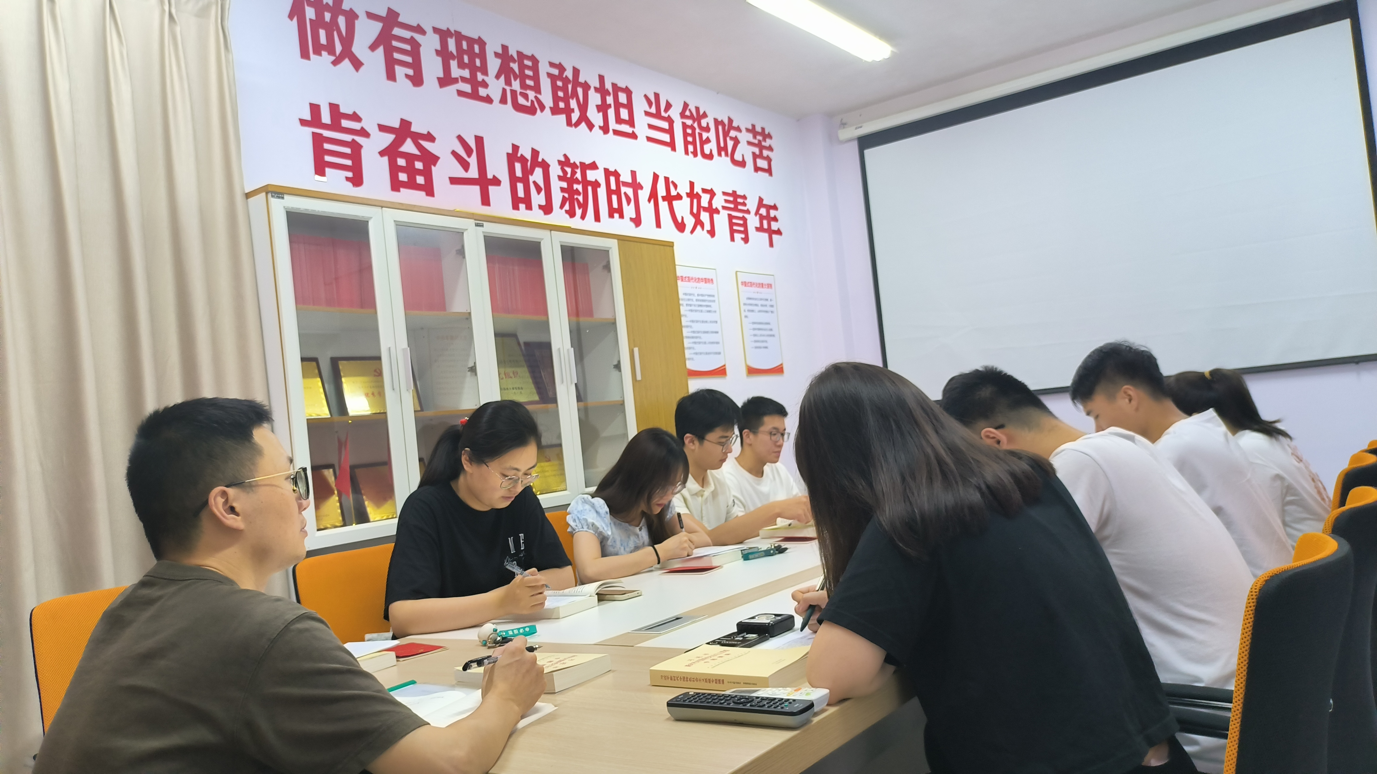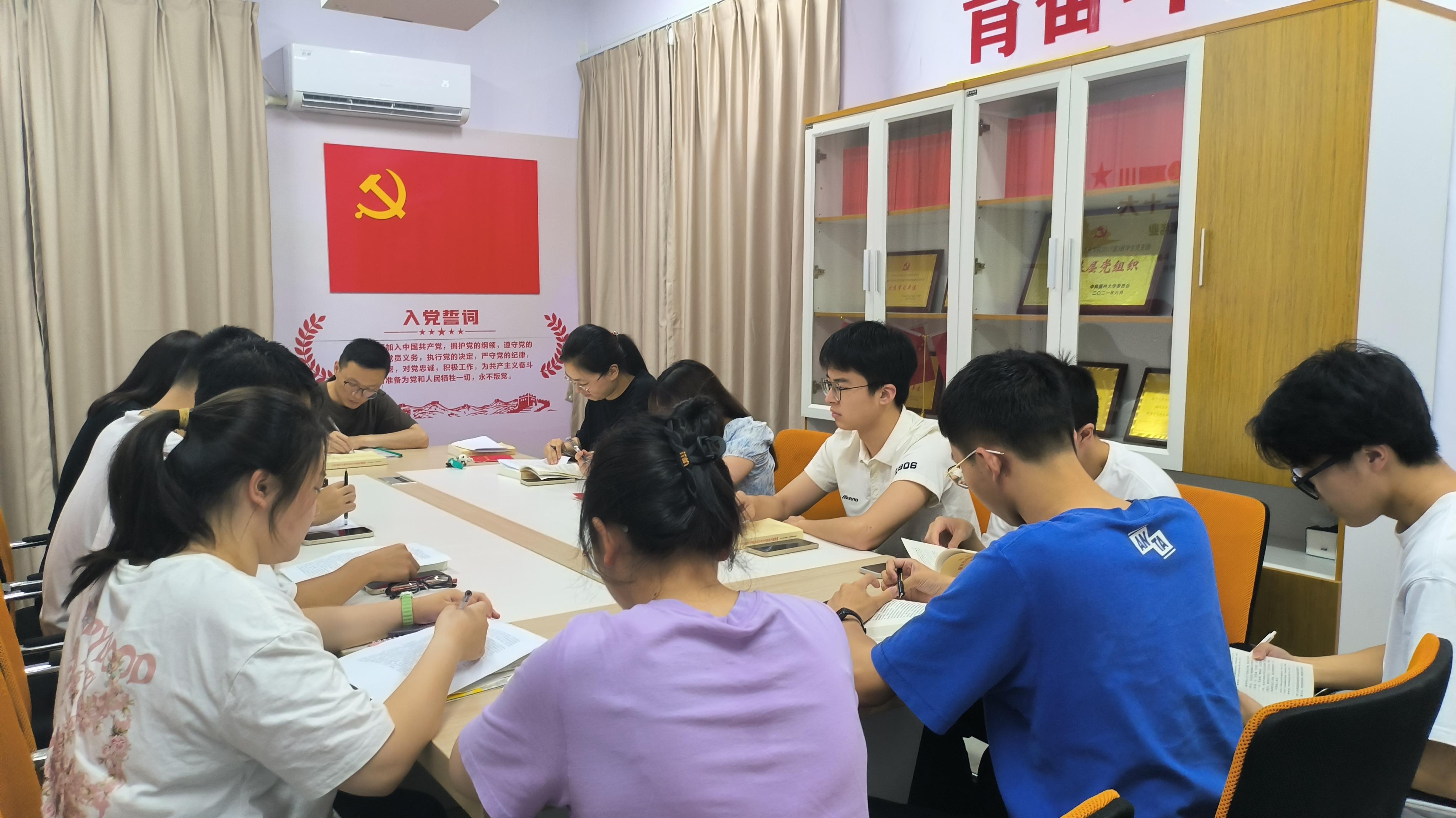 接着,支部成员围绕《习近平著作选读》的内容进行交流发言。张馨文同志分享了关于“推动形成绿色发展方式和生活方式是一场深刻革命”部分的学习心得,她认为地球是人类赖以生存的唯一家园,顺应自然、保护生态的绿色发展昭示着人类的美好未来,而建设绿色家园是各国人民的共同梦想,也是全球可持续发展的大势所趋。陈哲彦同志认为我们应深入开展《习近平著作选读》的学习研读,系统掌握习近平新时代中国特色社会主义思想的基本观点、科学体系,深入把握蕴含其中的历史逻辑、理论逻辑、实践逻辑,坚持不懈用习近平新时代中国特色社会主义思想凝心铸魂。陈旭文同志就“要有高度文化自信”结合时事,强调面向未来,我们必须毫不动摇地坚定文化自信,发挥文化引领和推动社会发展的重要功能,团结一致,勠力同心,迈向实现中华民族伟大复兴新征程。贾芯蕊同志表示作为新时代的大学生,我们应该不辜负国家、学校、父母和老师的期望,团结友爱,认真学习,积极锻炼,礼貌端庄,不怕苦不怕累,全面发展自我,勇于承担社会责任。王文栋同志分享了“学好用好《习近平著作选读》”,强调要深刻领会习近平新时代中国特色社会主义思想的真理力量和实践伟力,切实把这一思想变成改造主观世界和客观世界的强大思想武器。