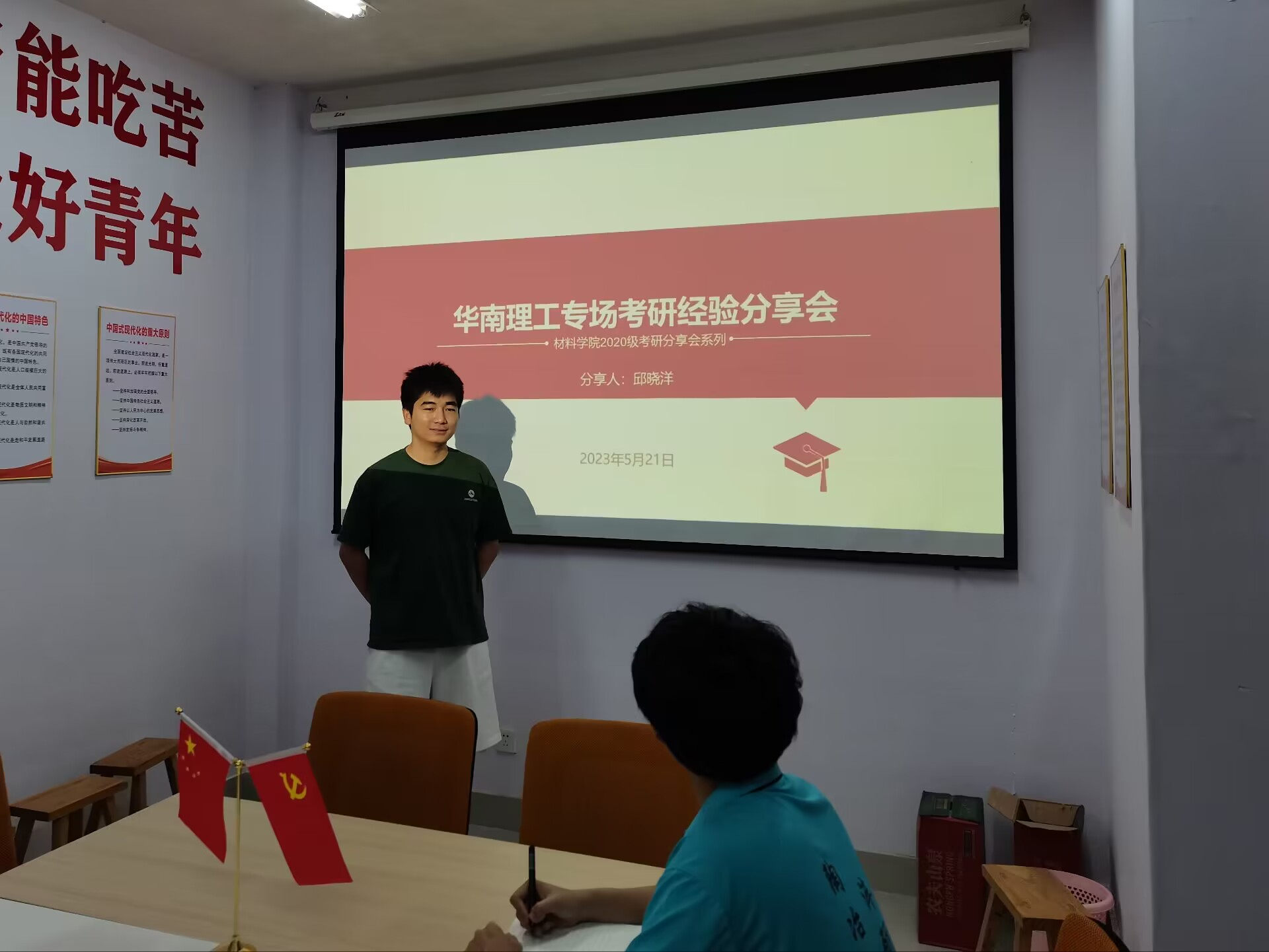 5月21日,在8号楼4楼活动室开展华南理工大学考研经验分享会,特邀有两次备考华南理工大学经验的魏学长和以高分上岸的邱晓洋学长主讲。学长介绍了华南理工的报考情况,针对近两年来专硕竞争尤为激烈的情况,学长建议大家,一是合理定位、选准方向,二是要有落子无悔的心态全力以赴,争取以绝对的优势进入复试,提高上岸可能性。