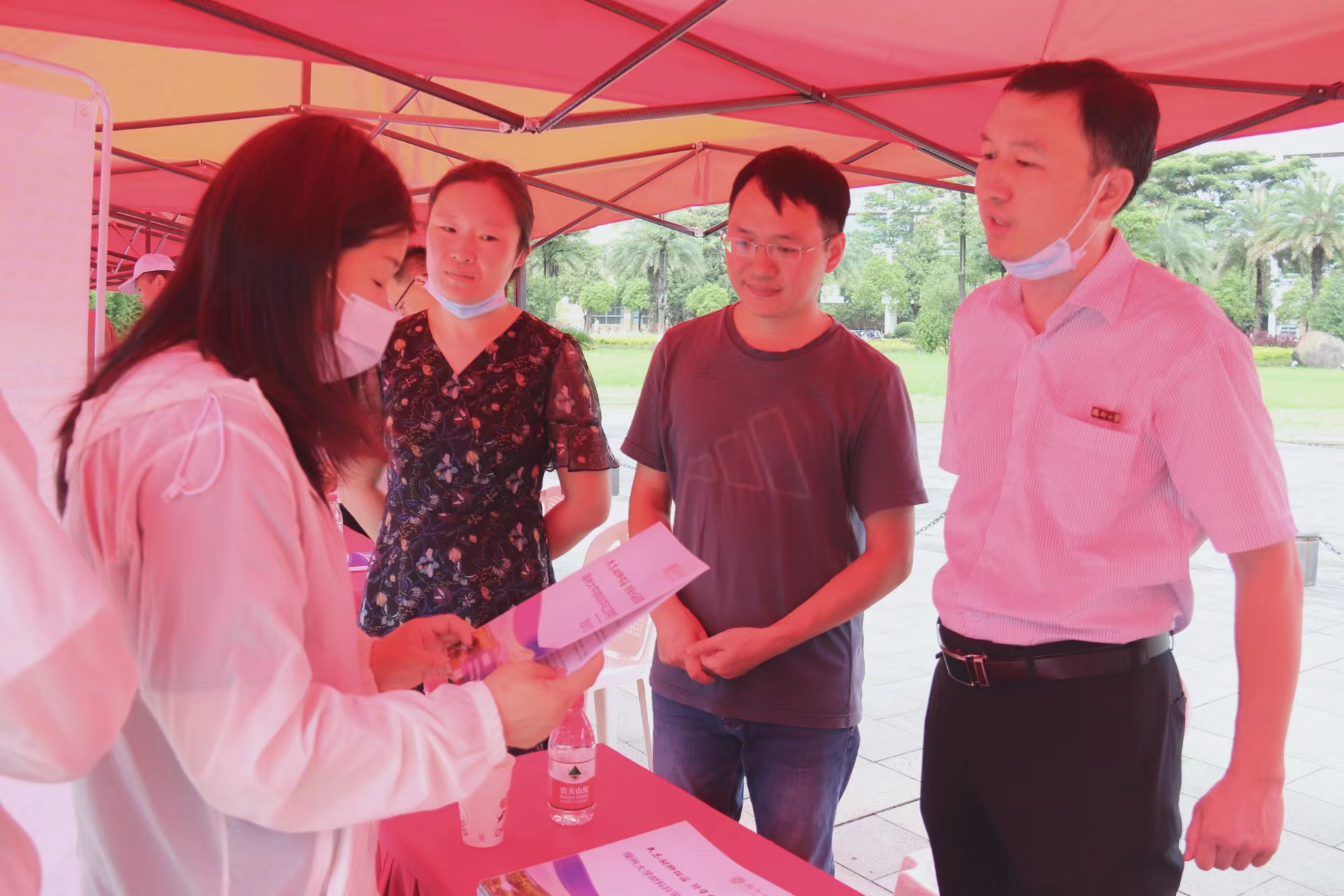 党委张志忠副书记、陈孔发教授、邓平副教授、团委书记牛秋月老师、专职辅导员张丽芬老师、兼职辅导员郑晨宇老师达到福万广场进行招生宣传。