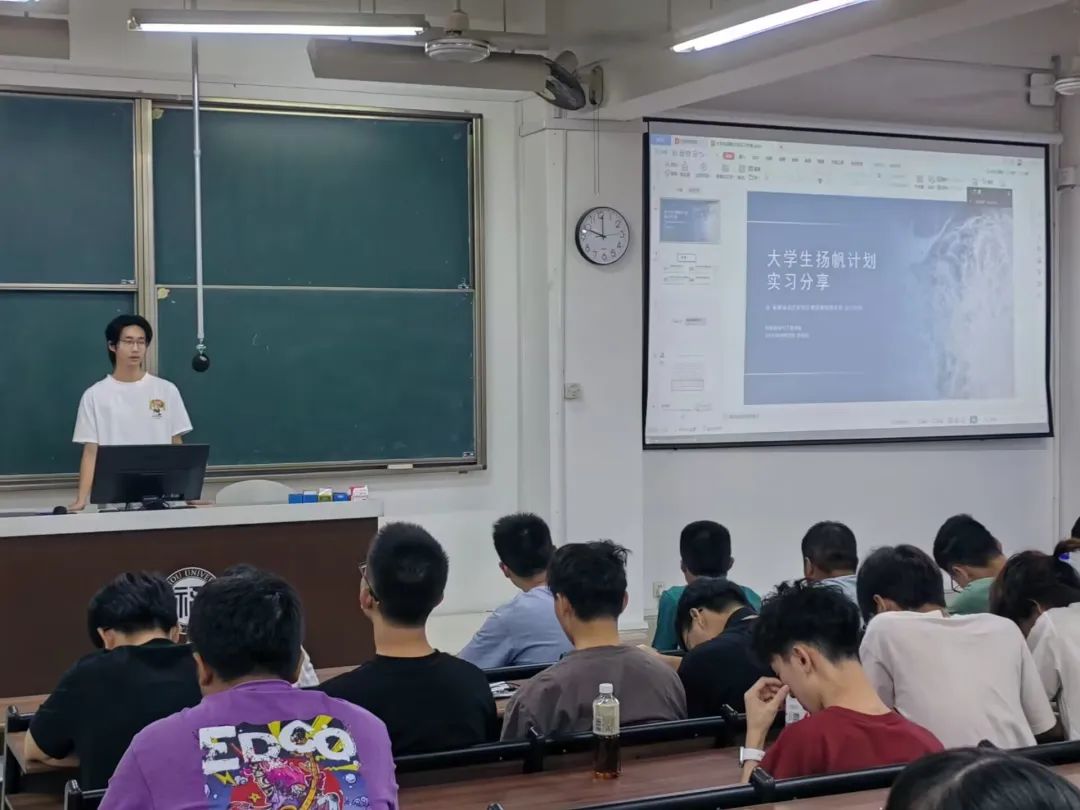 讲座中,罗良俊同学就“扬帆计划的主客观理解、优势、实习经历、报名方式”四个方面进行一一讲解,为同学们提供了许多积累实习经验的宝贵意见,并让同学们了解到了一个能够充分发挥自我优势的平台。