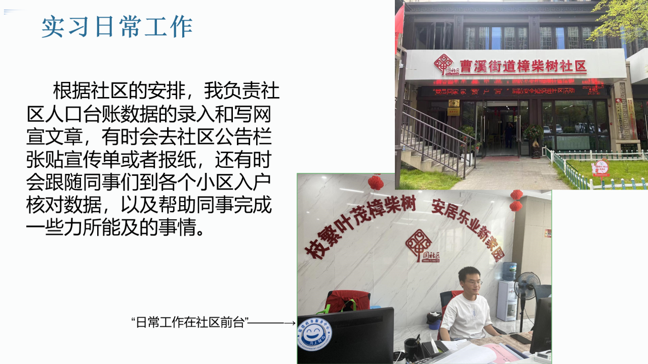 讲座以“扬帆计划对学生的多面影响”为主题,邀请罗良俊同学分享在社区的实习经历。