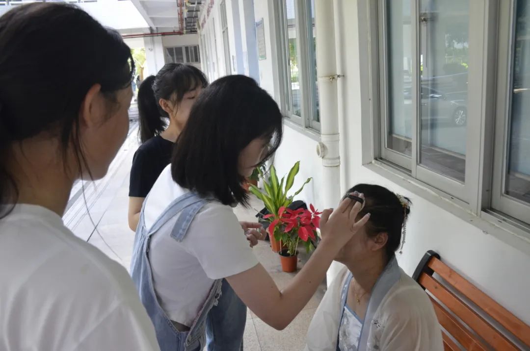 此次活动,我们将目标聚焦于身边的校工人员们,给校工人员们化妆,更换极具中华特色传统文化的汉服,寻找校园内景色较为优美的地方拍摄艺术照,记录下校工人员们的灿烂笑容。