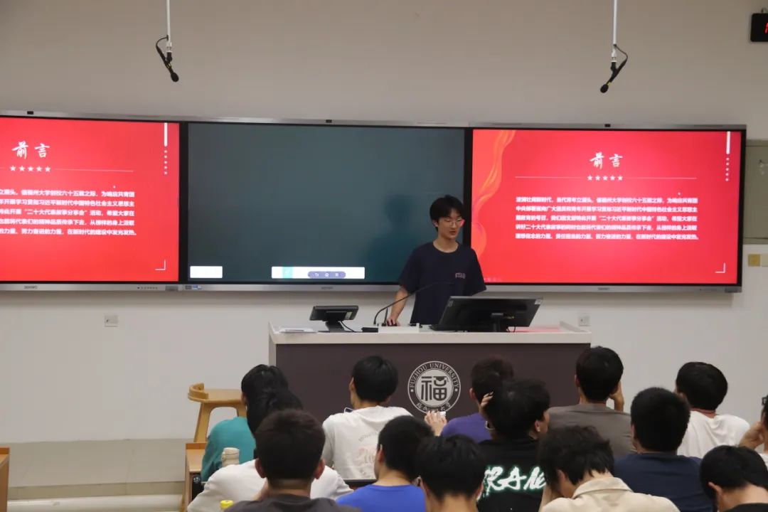9月26日,支部于教室内开展“二十大代表故事分享会”活动,支部团员分为4个小组,每个小组负责收集一位党二十大代表的先进事迹,在分享会上以PPT形式与大家分享,向大家讲述各位优秀代表的奋斗历程。