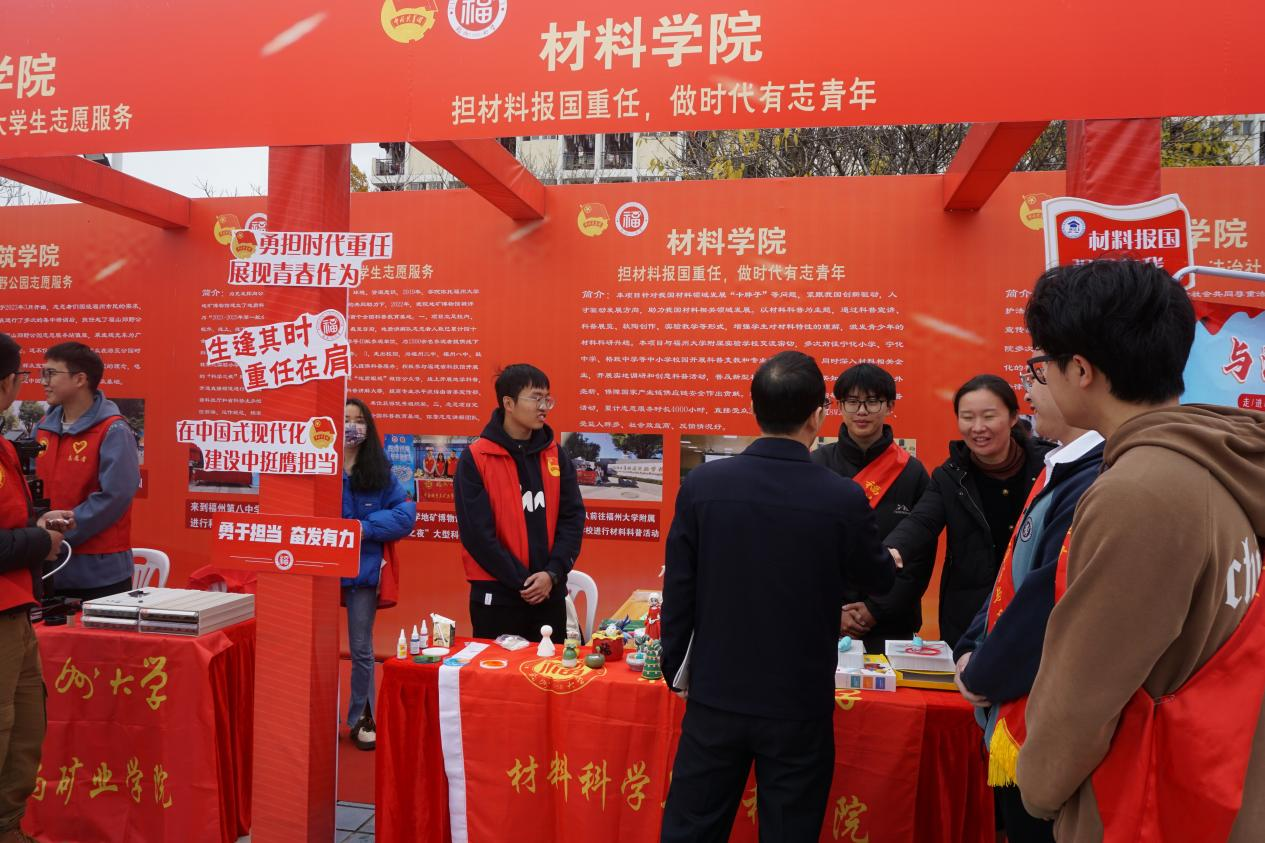 团中央青年志愿者行动指导中心主任石新明、共青团福建省委副书记魏玲出席此次项目交流会,校党委副书记黄身勇陪同,成人动漫 同学在交流会的现场向各位老师讲解了学院“担材料报国重任,做时代有志青年”特色志愿服务项目。