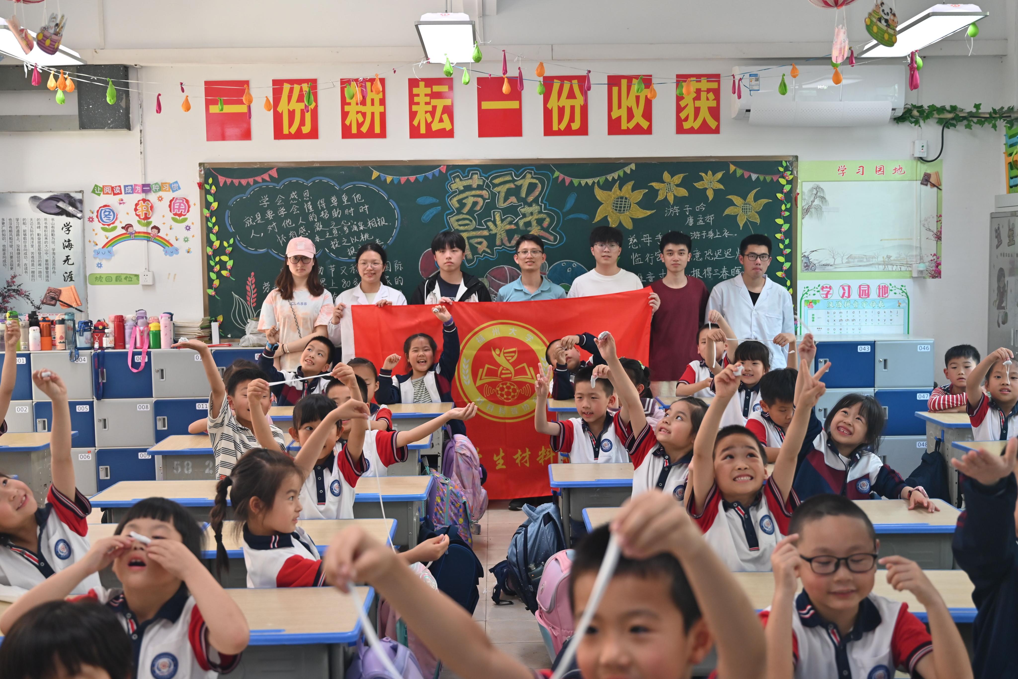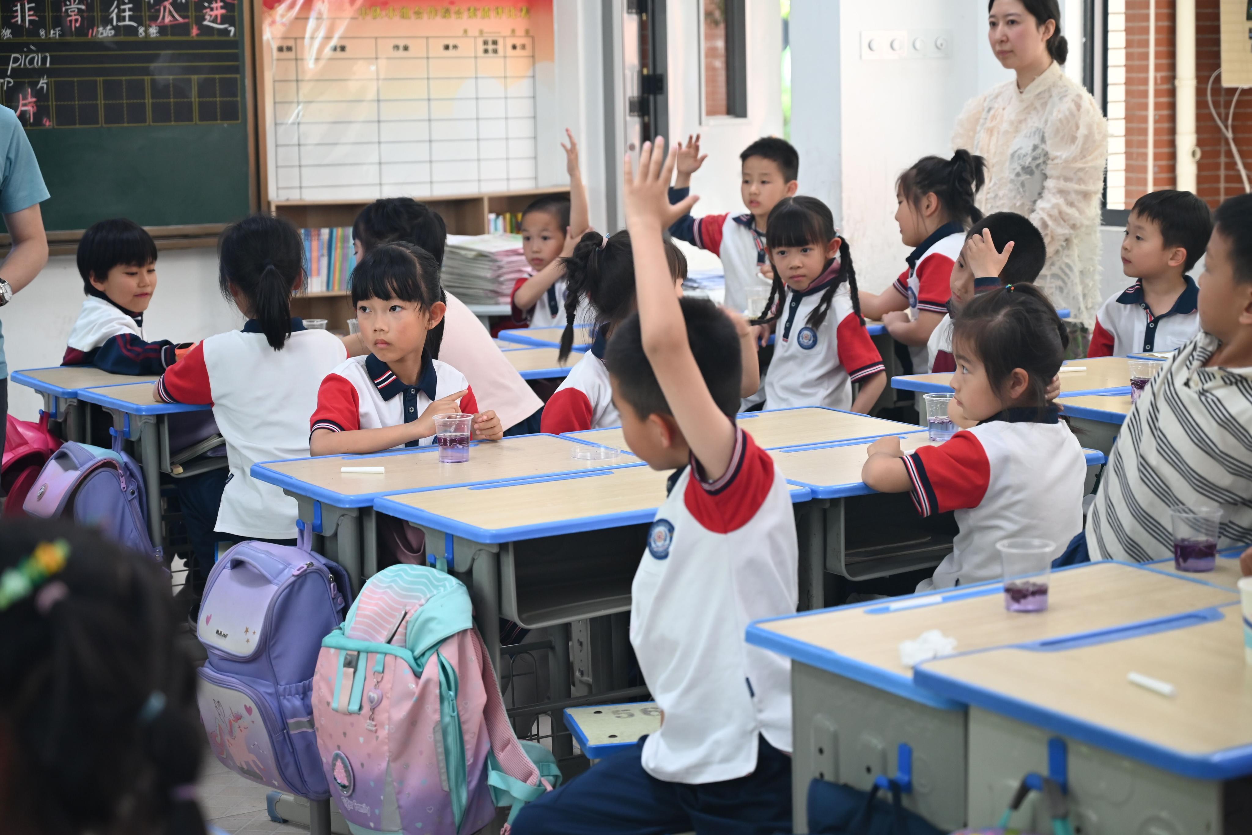 活动当天,协会成员郑雅渟作为主讲老师,郭志坤作为助教,与来自一年级9班的52位小朋友一同探索了材料科学的神奇。