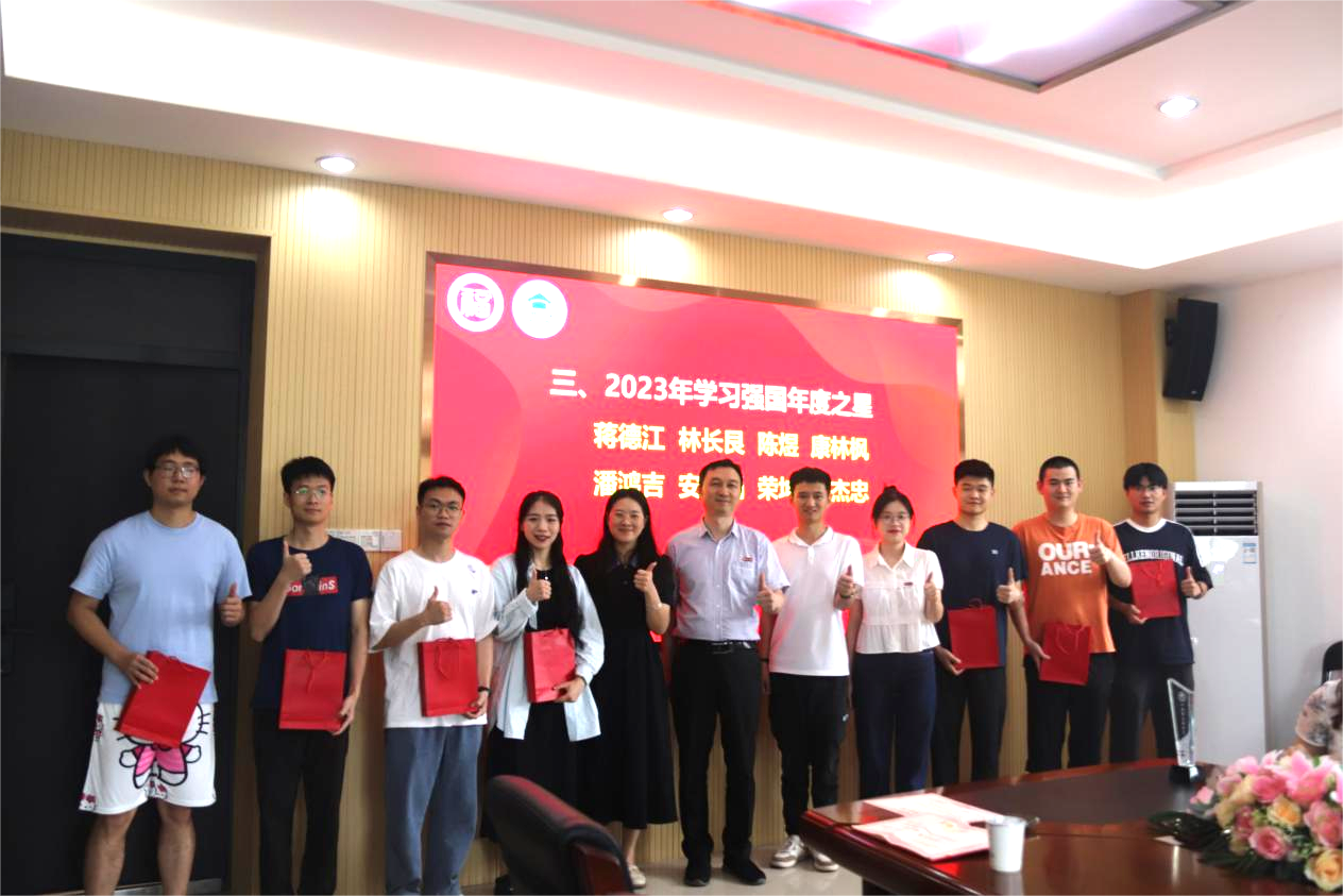 会议伊始,同学们观看了关于新闻工作者的短片,对宣传工作有了更深厚的了解,对兢兢业业的宣传工作者有了更深的敬意。接着,由辅导员张庭士老师宣读表彰决定,决定授予钟郅吴等10人2023年十佳学生通讯员称号,授予钟郅吴2023年度学生通讯员称号,授予蒋德江等8人2023年“学习强国”年度之星称号。由张志忠副书记为获奖人员颁发奖杯和荣誉证书。在自由交流环节中,获奖同学都发表了各自对宣传工作或是学习强国学习的看法和接下来的学习工作计划,张志忠副书记对每位同学的发言都做了肯定,激励同学们继续努力,为各自的工作添砖加瓦。