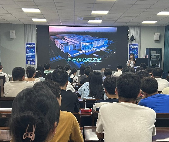 讲座中,荣春老师从“半导体蚀刻工艺简介”“干蚀刻的技术演进”等方面向同学讲解半导体方面的知识,使同学们对这个行业的起源,现状,前景以及挑战更加了解。讲座中,荣春老师还根据现有的就业行情,结合公司实例,向同学们介绍了联芯的薪资待遇,Q&A环节,荣春老师及HR老师就同学们关心的问题进行解答。