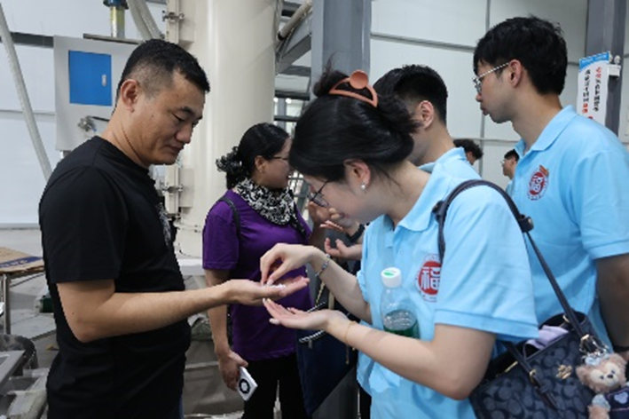 随后,实践队员们来到了漳州鑫艺隆新材料科技有限公司。该公司是一家专注于高分子新材料的企业,专业生产和销售多种薄膜专用功能母料,产品覆盖防粘、爽滑、消光、增挺、抗静电等多项功能应用。在生产车间,实践队员亲眼见证了母料生产的每一个环节,并对产品的生产工艺和质量控制有了更直观的认识。