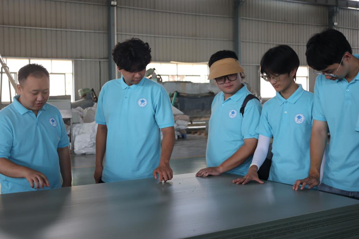 福建塑鑫旺新能源有限公司总经理林溪森带领实践队参观中空塑料板的生产车间,讲解中空塑料板的一系列的生产过程。