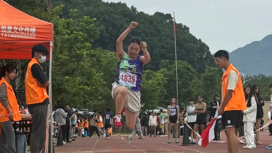 陈鸿铭老师荣获男教青跳远决赛第一名!