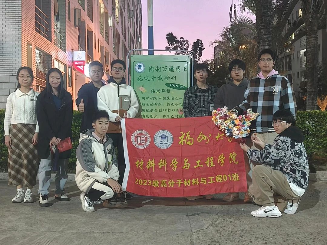 为了坚持贯彻理论学习与实践教育相结合,成人动漫 2023级高分子材料与工程1班团支部于11月28日下午组织开展了以“陶制万疆国土,花绽千载神州”为主题的实践活动。本次活动于成人动漫 铜盘校区朝阳餐厅门口举办。