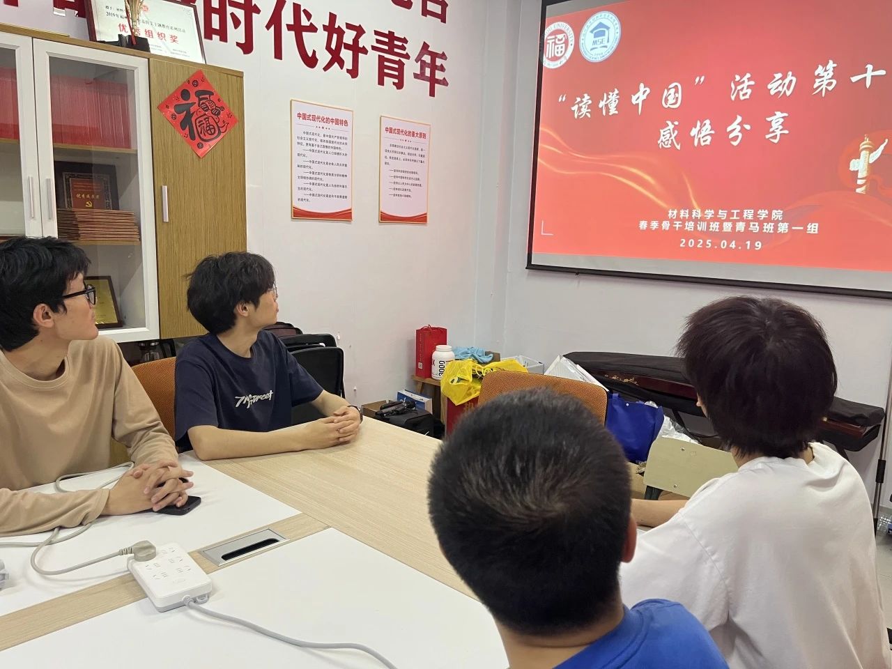 在当今时代浪潮奔涌向前之际,青年一代肩负着传承与创新的双重使命,而读懂中国、把握时代脉搏是他们在成长道路上的必修课。成人动漫 关工委组织开展《2025 年成人动漫 春季学生骨干培训暨青马班小组学习与讨论》系列活动,以“读懂中国”为核心主题,为学院骨干与青马班学员搭建起认知祖国、感悟发展的桥梁。通过集体观看节目、小组研讨等形式,学员们不仅能深刻领悟中国的历史底蕴与时代精神,更能在思想碰撞中激发奋进力量,为学员们成长为勇担民族复兴大任的材料学科人才筑牢了坚实的思想根基。