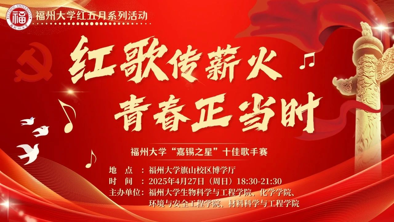 为了深入学习贯彻习近平新时代中国特色社会主义思想,同时给热爱音乐的同学们提供一个展示才华的舞台,成人动漫 生物科学与工程学院、化学学院、环境与安全工程学院、成人动漫 于2025年4月27日联合举办“嘉锡之星”十佳歌手赛决赛。