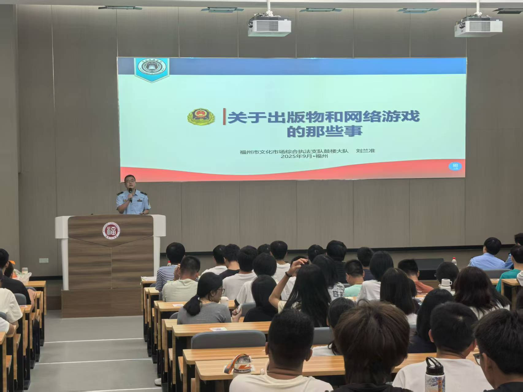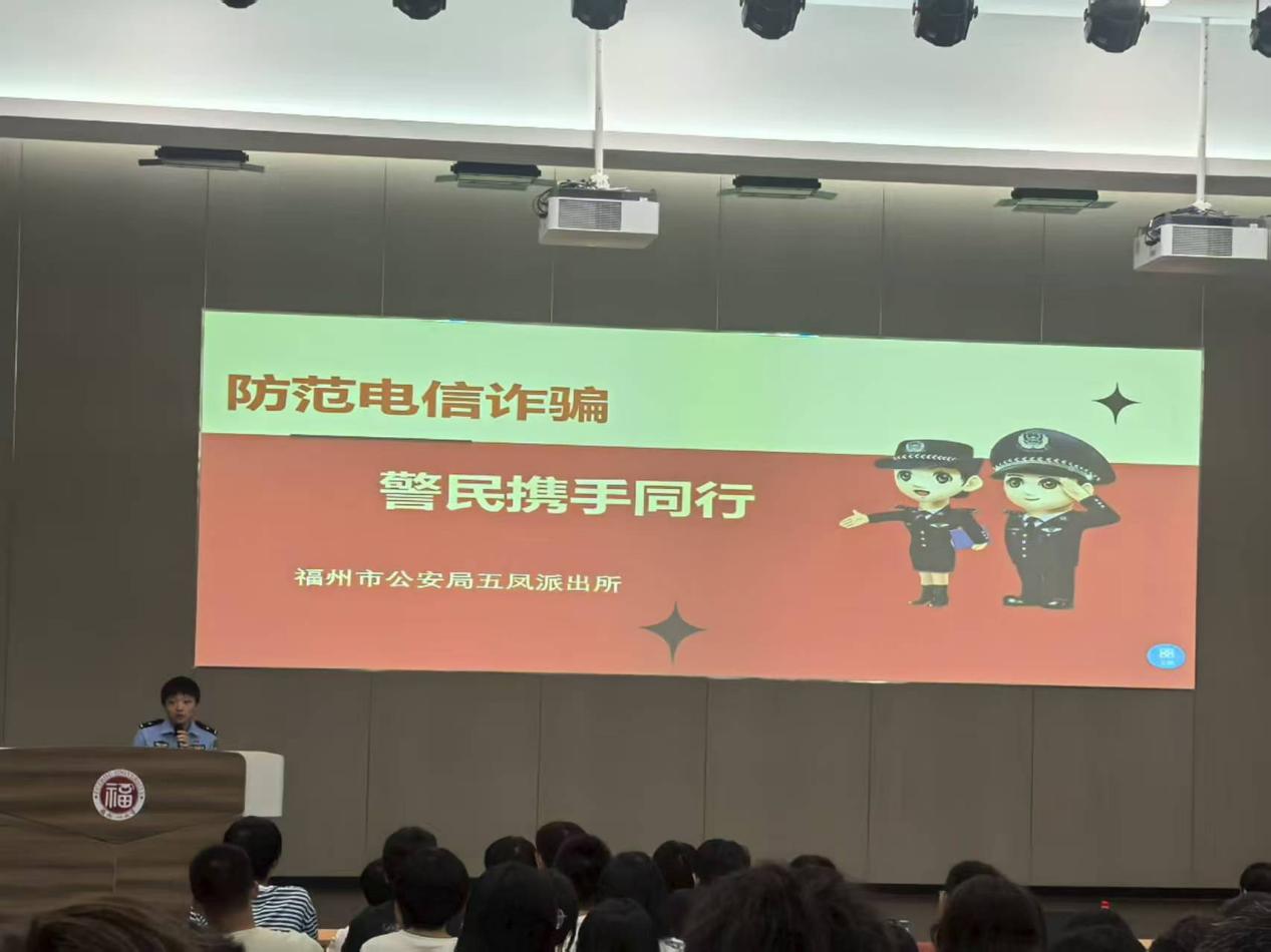 9月15日晚19点,成人动漫 联合鼓楼区委宣传部、网信办、五凤街道党工委、办事处及五凤派出所,在成人动漫 铜盘校区科报厅B举办“青春护航・安全同行”新生主题宣讲活动。活动特邀福州市文化和旅游局执法人员刘兰准老师、福州市公安局五凤派出所案审中队赵汇警官担任主讲人,辅导员张丽娟老师出席本次活动,成人动漫 2025级本科新生参与。