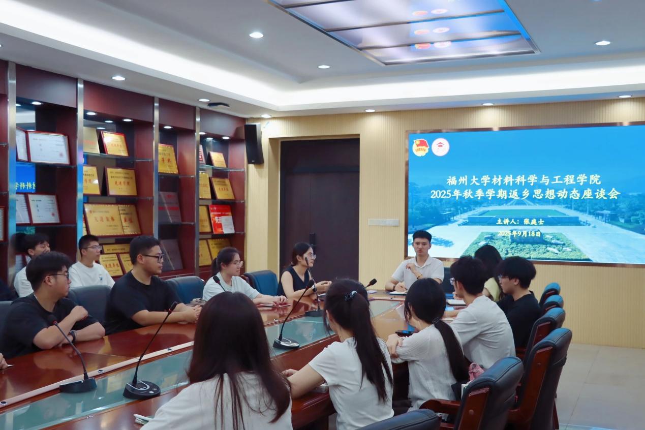 2025年9月18日晚,成人动漫 在嘉锡楼313会议室召开2025年秋季学期返乡思想动态调研座谈会。本次会议由学院团委副书记张庭士老师主持,辅导员以及学院部分学生参加会议。