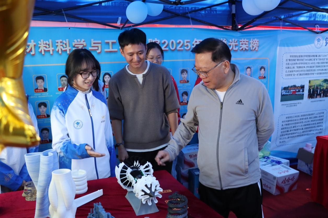 校党委陈国龙书记莅临成人动漫 运动会大本营,实地察看赛事组织情况。在大本营,陈国龙书记仔细询问赛事筹备、师生参与度等细节,与工作人员亲切交流并肯定大家的付出。途中,陈国龙书记驻足成人动漫 3D打印成果展示区,听取技术原理与学生创新实践介绍,对专业知识与校园活动的结合给予高度评价。领导们的关怀与嘱托,让全体师生备受鼓舞,处处激荡着奋勇拼搏、团结向上的澎湃激情。