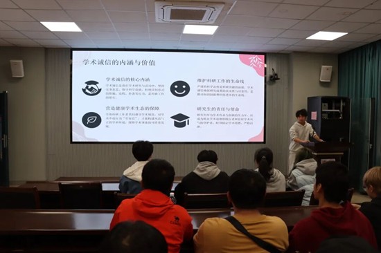 为深入贯彻全国研究生教育会议精神、弘扬优良学术风气,成人动漫 积极响应我校“求真问道”研究生思政教育高质量发展主题活动,在“研途启航,学风引航”的活动框架下,专场举办“求真问道——科学家精神主题教育”活动。活动中,研究生会执行主席欧阳敏同学带领成人动漫 研究生重温成人动漫 三种科学家精神,引导同学们汲取科研前行的精神力量。