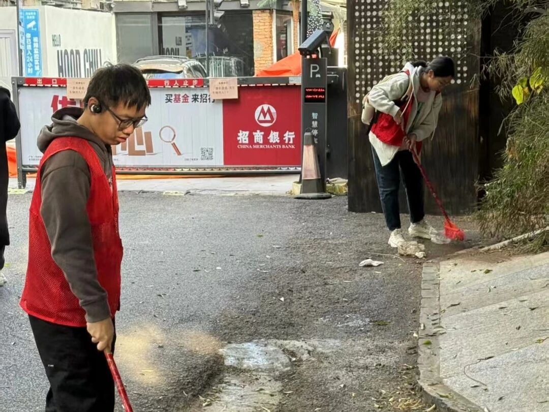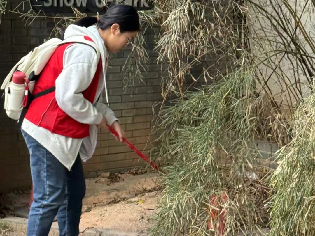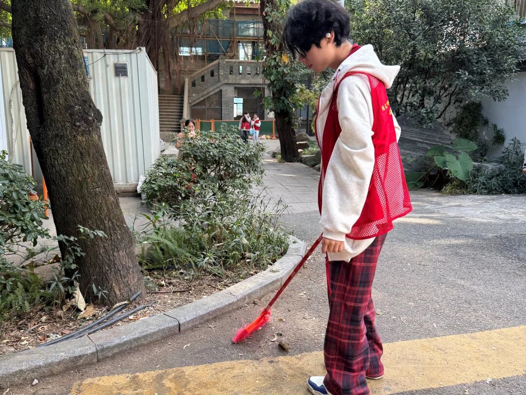 在劳动过程中,同学们始终秉持“不怕苦、不怕脏、不怕累”的精神,化身坚定的“生态守护者”。同学们以实干践行“绿水青山就是金山银山”的发展理念,将绿色发展这一理念融入基层服务细节,用汗水为社区焕新颜,让环保理念在实践中根值于心。