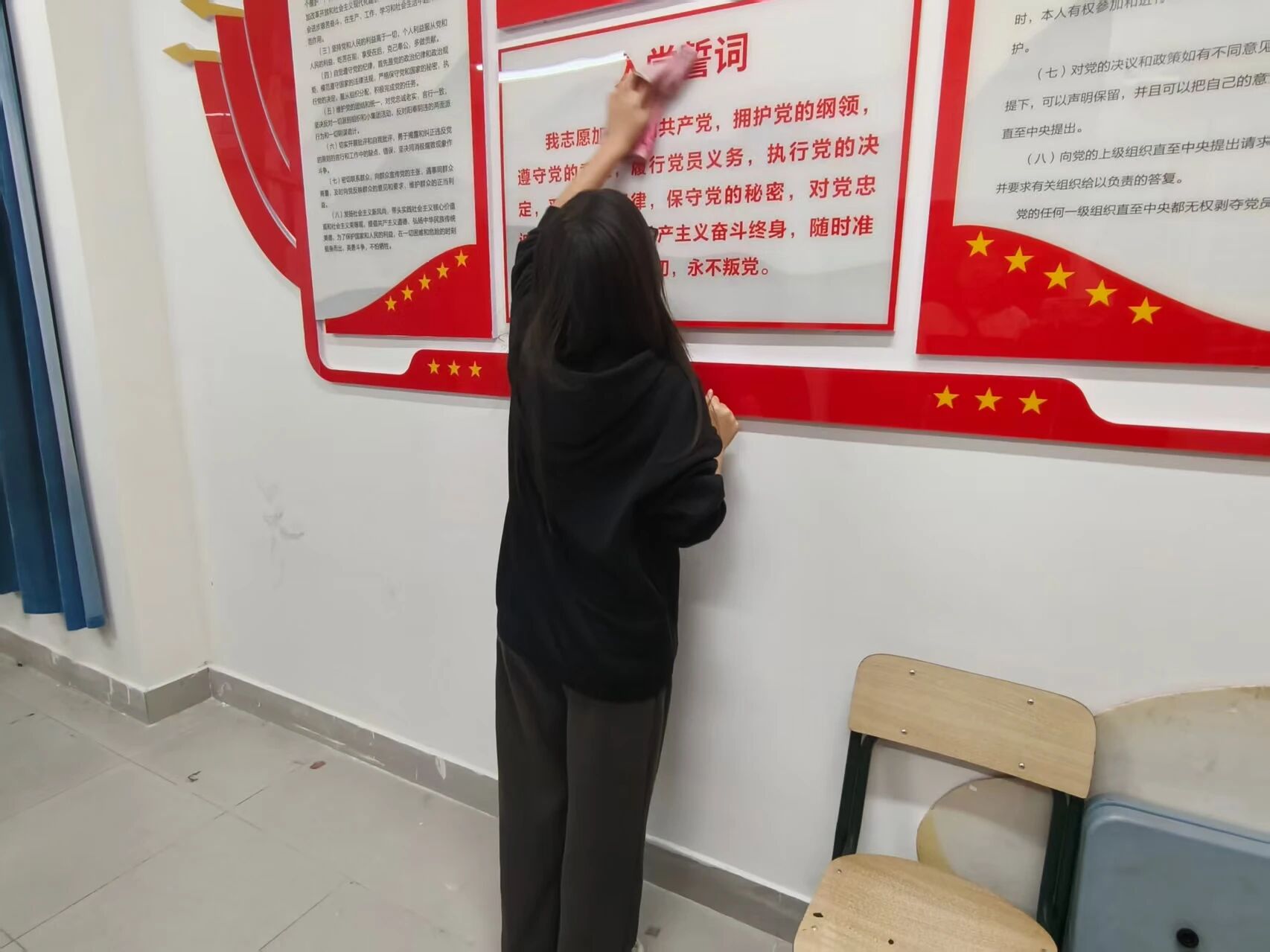 活动现场,在负责人的有序统筹下,同学们手持扫帚、拖把、抹布、垃圾夹等清洁工具,全身心投入环境整治工作。清理期间,同学们分工明确、协作无间,细致清扫藏匿的纸屑灰尘,不放过任何一处卫生死角,认真擦拭桌椅,将污渍逐一清除。而这样不惧脏累、相互配合的精神,正是新时代学子昂扬向上的劳动风采与集体责任感的生动展现。