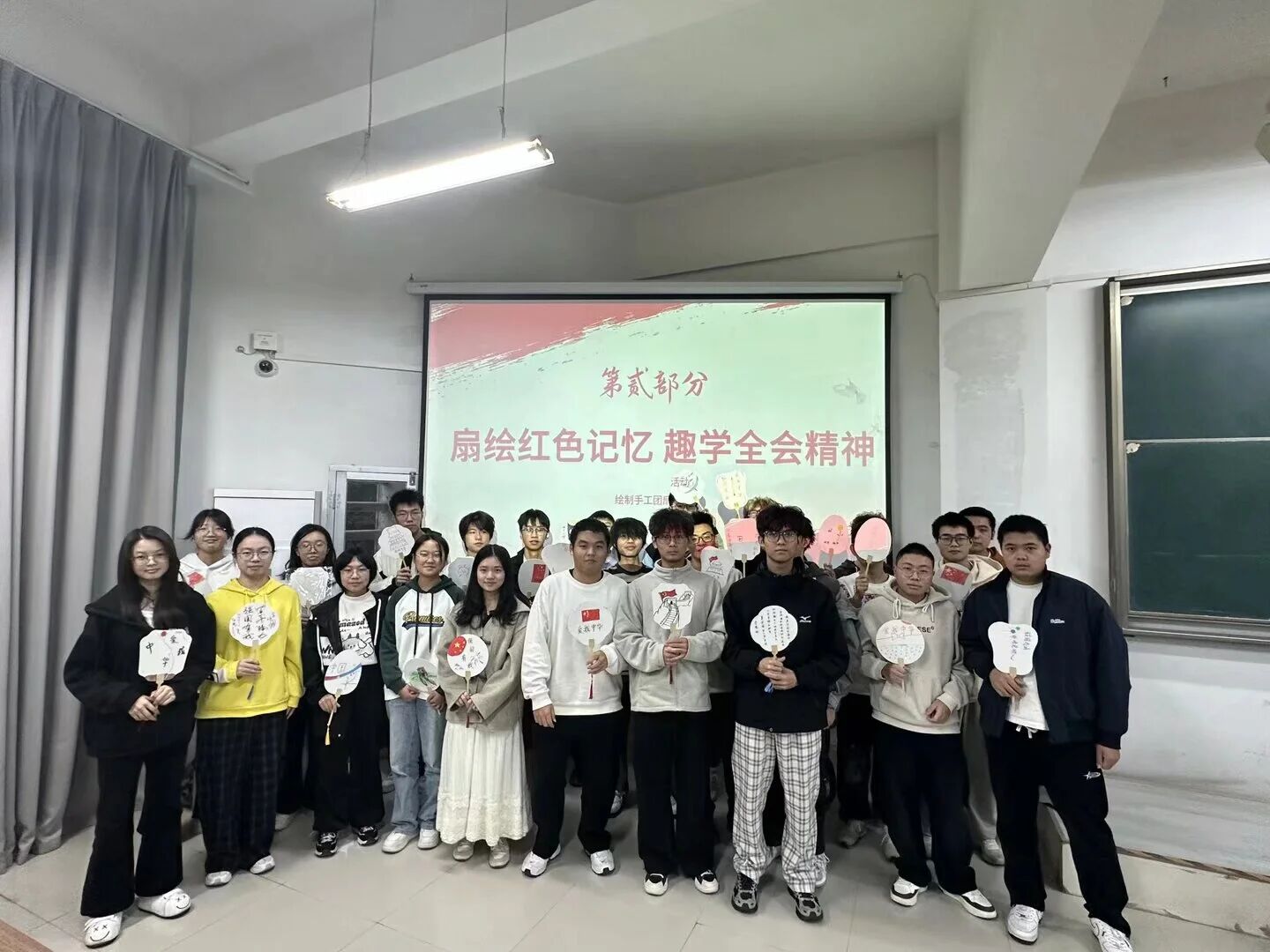 为紧扣红色文化传承主题,2025级材料科学与工程3班团支部以“手工创作传红韵”为载体,组织团员开展红色团扇手绘活动,将五角星、长城等红色元素融入团扇创作,以笔墨寄情怀、绘就初心底色。