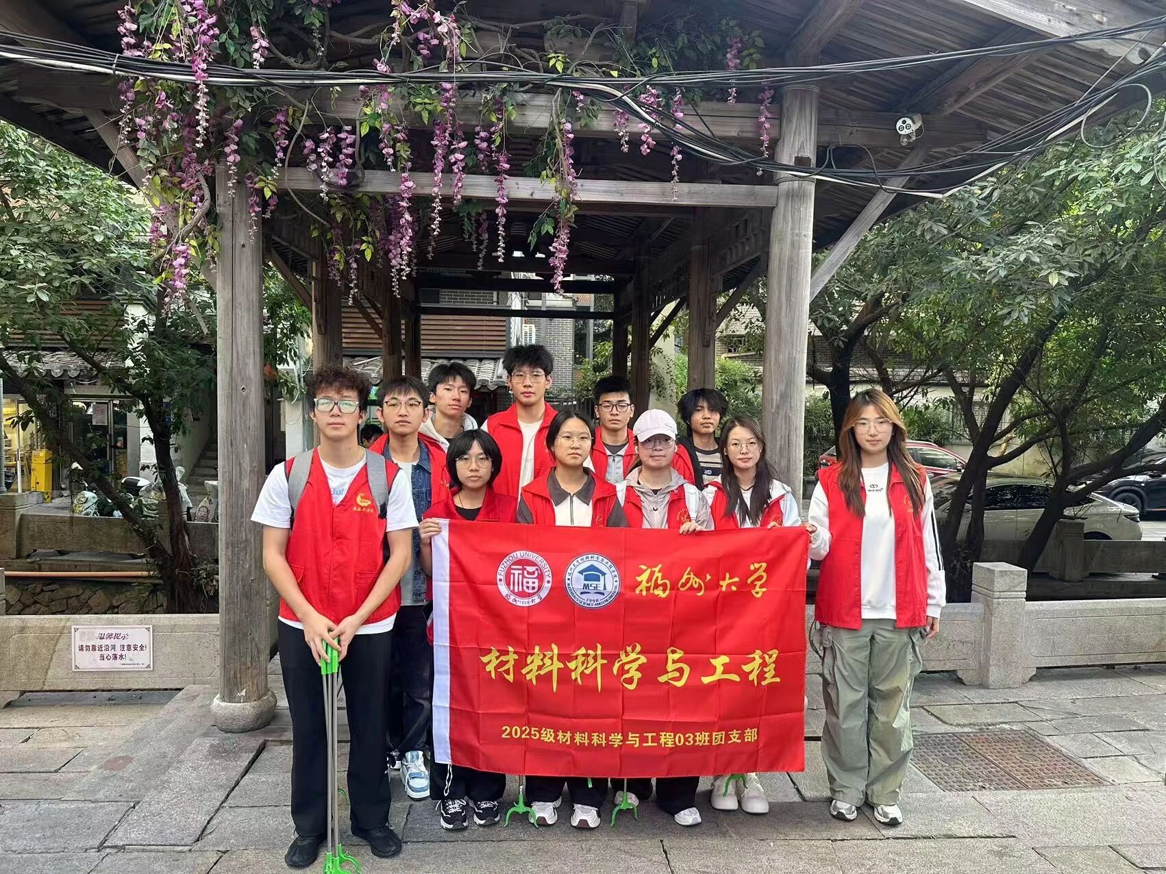 为深化团员志愿服务精神,践行青年社会责任,搭建校社联动桥梁,2025级材料科学与工程3班团支部走进三坊七巷社区,开展安泰河河边环境美化团立项服务活动。