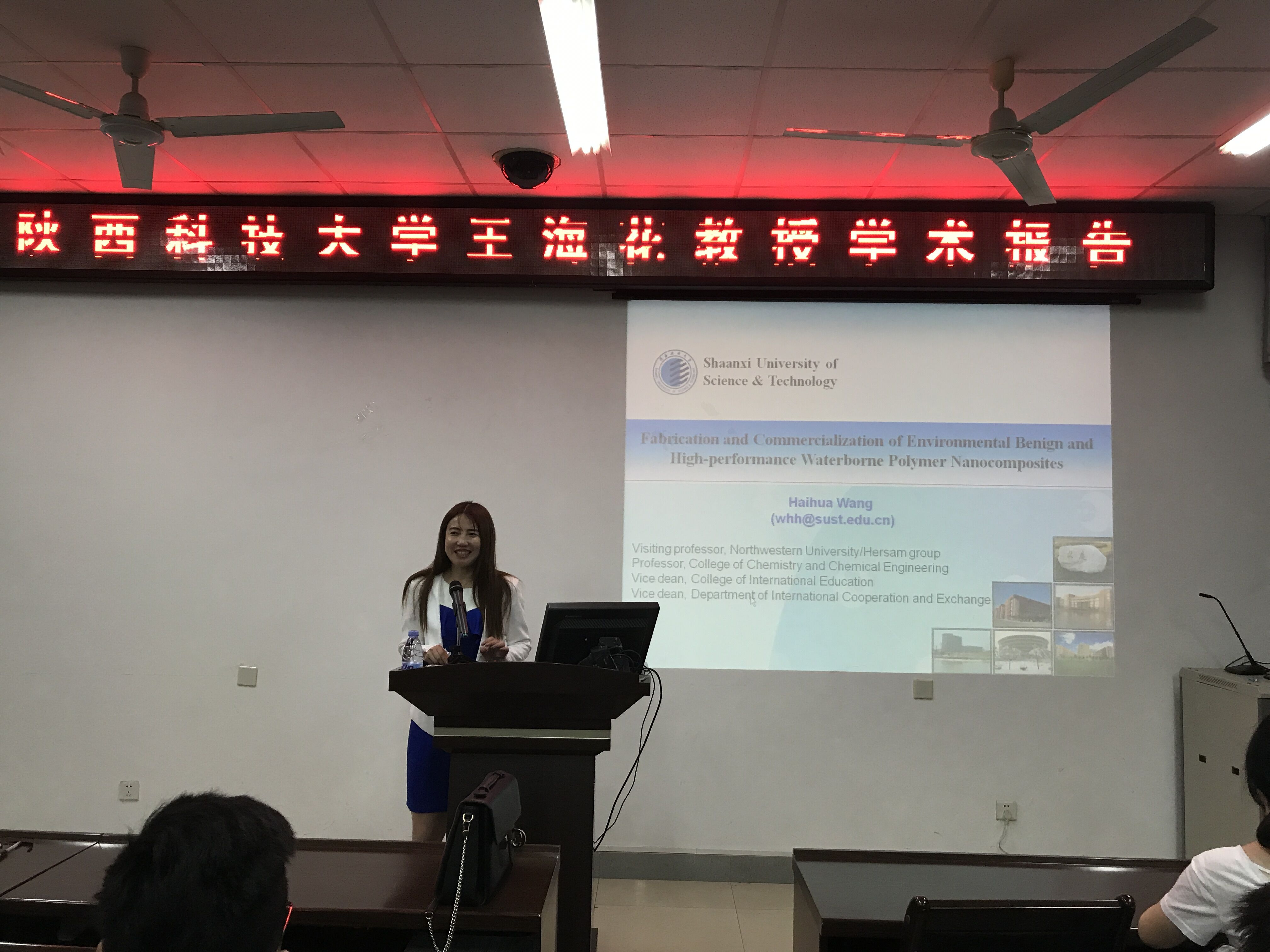 王海花,陕西科技大学教授,博士生导师,国际合作与交流处副处长,国际教育学院副院长;教育部留学回国人员,加拿大UNB大学博士后,英国巴斯大学和美国西北大学访问教授。荣获“陕西省青年拔尖人才”、“陕西省青年科技新星”、 “陕西省青年科技奖”、第一届“陕西省化学优秀青年奖”、 “陕西省优秀博士论文”等。科研方面,至今主持完成科研项目21项,项目成果转化13次。作为第一完成人,获得中国轻工业联合会技术发明奖二等奖;参与研究成果亦获得多项奖励,其中陕西省科学技术奖一等奖、二等奖各1项,陕西省专利发明二等奖1项,中国轻工业联合会科学技术发明三等奖1项,咸阳市科学技术一等奖2项。至今在国内外知名期刊上发表文章133篇,其中SCI、EI收录70余篇。授权发明专利29件, 5项专利技术得到成功转化。技术推广方面,研究成果已在陕西宝塔山油漆股份有限公司、成都杰晟属邦新材料有限公司、陕西邦希化工有限公司、中国石油长庆油田公司、成都印钞有限公司等行业龙头企业得到了成功转化。