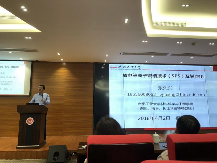 2018年4月2日下午,合肥工业大学张久兴教授在国家大学科技园一楼报告厅为成人动漫 师生带来了一场题为“放电等离子烧结技术(SPS)及其应用”的学术报告。成人动漫 倪朝兴书记、詹红兵院长和王晨副院长出席了此次报告。报告由詹红兵院长主持。