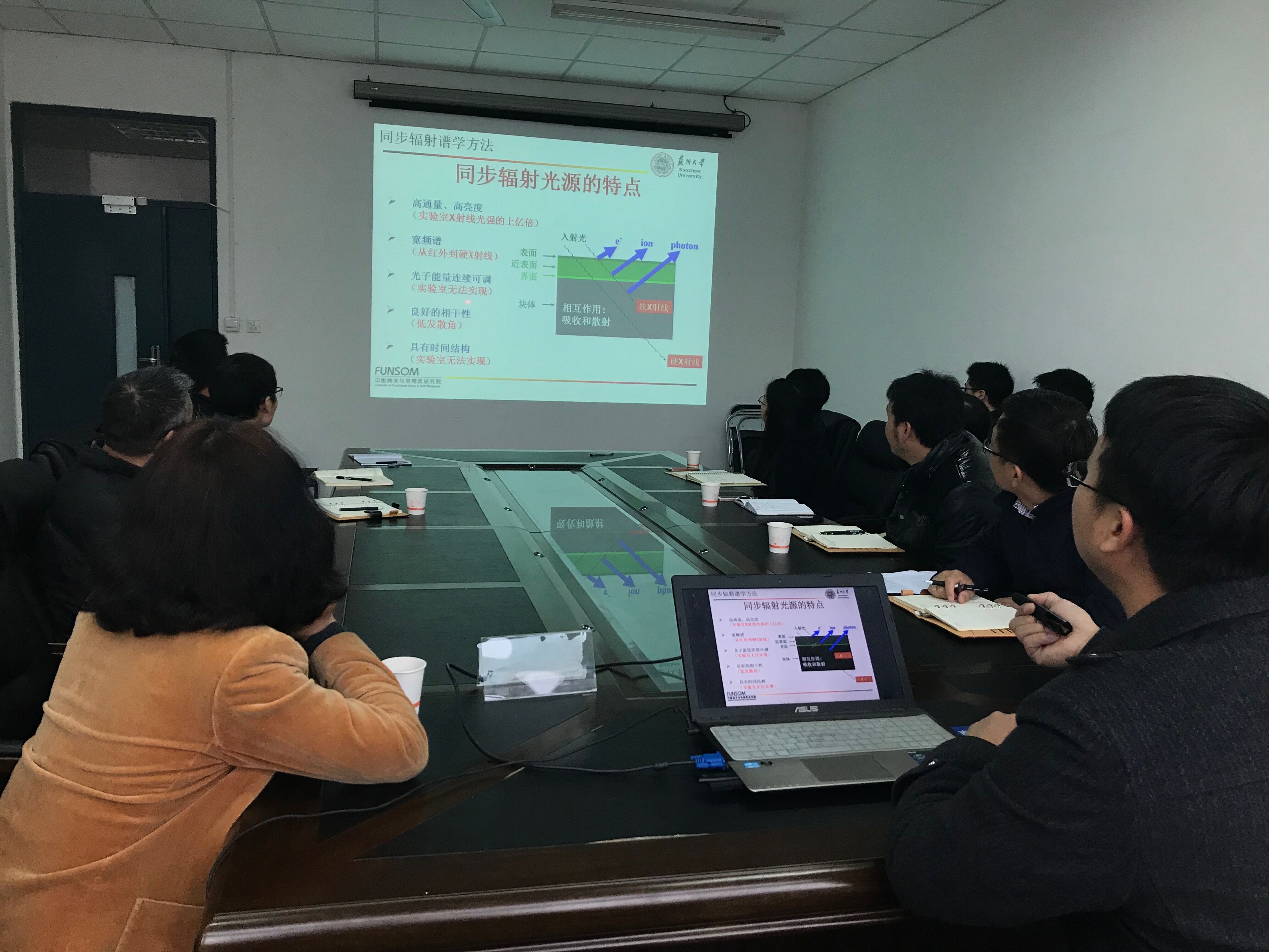 2017年12月14日上午10点,苏州大学钟俊教授在材料科学楼402做了一场题为“纳米能源材料的同步辐射谱学研究”的学术报告。学院詹红兵院长、张腾副院长和十余位中青年教师参见了此次报告,报告由学院程年才教授主持。