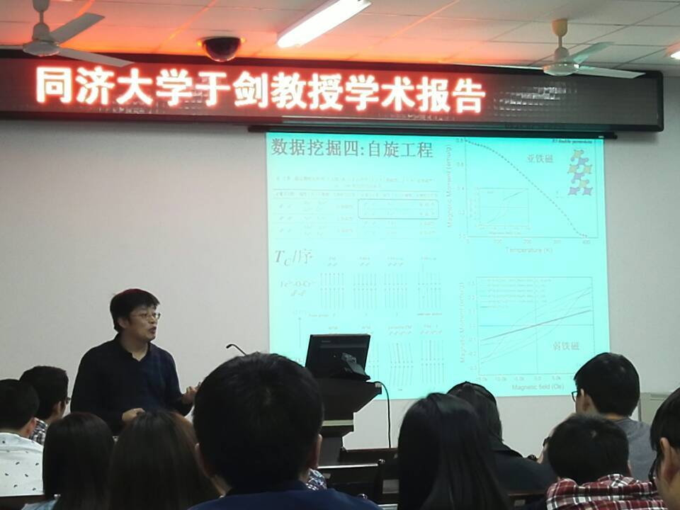 11月8日,同济大学、东华大学于剑教授在成人动漫 实验楼404会议室举办了一场题为“钙钛矿结构铁性功能材料基因组学设计---高阻铁酸铋系铁电陶瓷材料的制备及其物性研究”的报告。