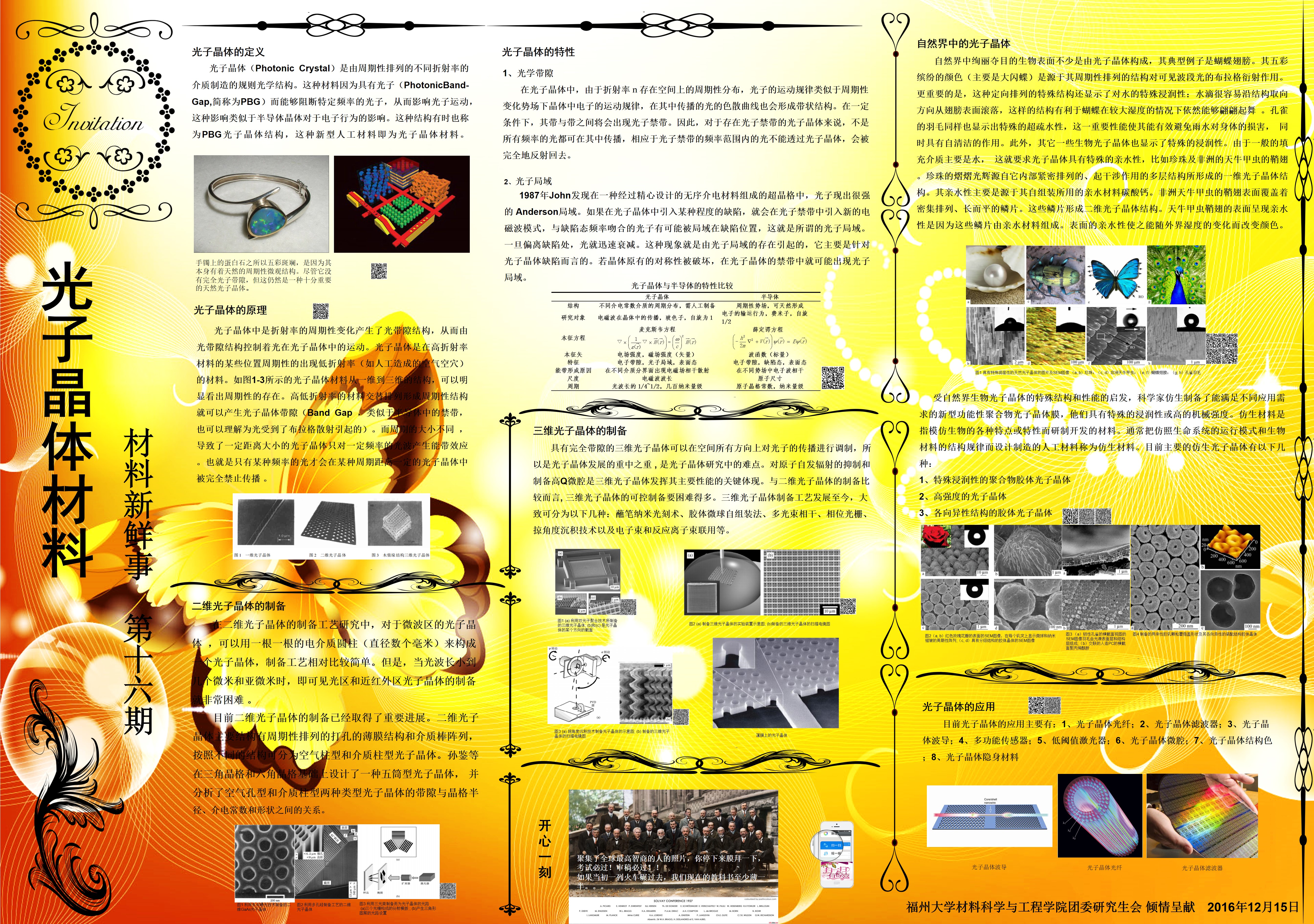 12月18日,由成人动漫 研究生会主办的 “材料新鲜事”科普海报在成人动漫 实验楼一楼如期展示。“材料新鲜事”结合当前最新的研究动态,向同学们科普光子晶体的相关知识概念和一些最新的新闻报道,本期主角为光子晶体。海报刚刚张贴就迎来同学和老师们的围观,展示得到了良好的回应。