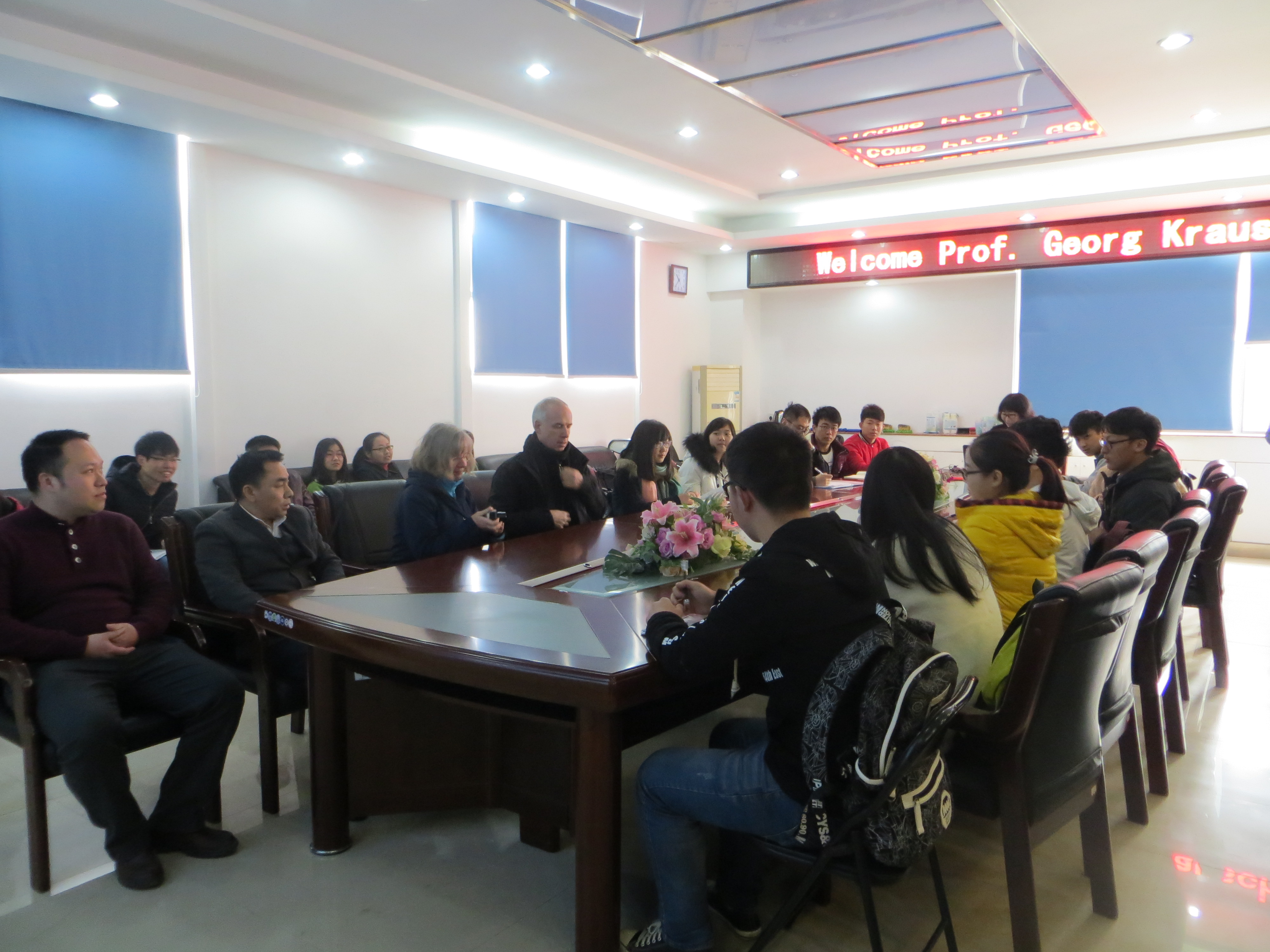 3月11日上午,成人动漫 在嘉锡楼313开展了出国留学交流会。本次交流会有幸邀请到了德国知名大学美因茨大学的校长克劳许教授(Prof. Georg Krausch)与福建省莱茵兰普法尔茨学院菲安雅主任与成人动漫 学生进行交流。成人动漫 院长詹红兵教授、导师张腾教授、导师吴波教授等学院老师出席本次交流会。