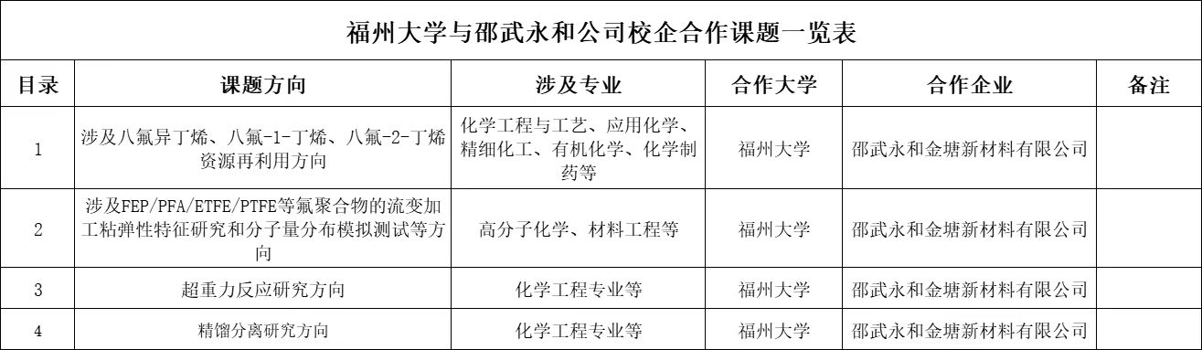 【校企合作信息202604】邵武永和公司校企合作课题